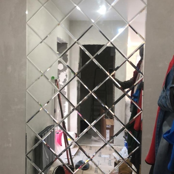 Использована зеркальная квадратная и треугольная плитка с фацетом.